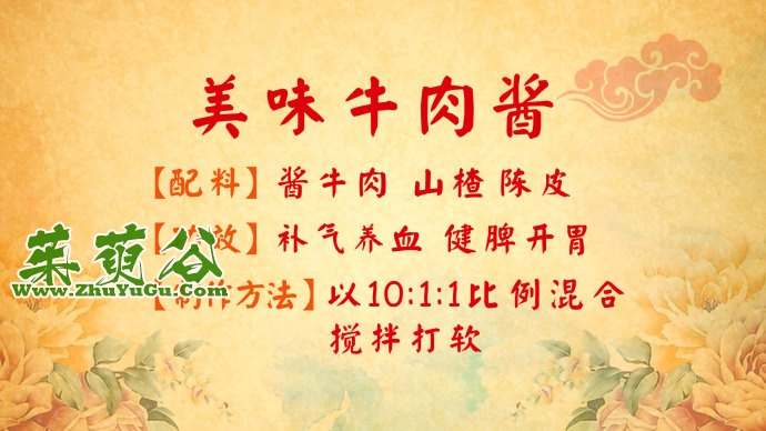 适宜牙齿不好的老年人食用。这款肉酱的原材料选用的是牛肉,中医认为牛肉可以补脾胃,化生气血。并且牛肉性平,最适宜体质虚弱的人群食用。普通人到了晚秋的时候,也可以适当吃些牛肉,温补脾胃,为进入冬天打下好的基础。 美味牛肉酱 配料:酱牛肉 山楂 陈皮 功效:补气养血 健脾开胃 制作:牛...