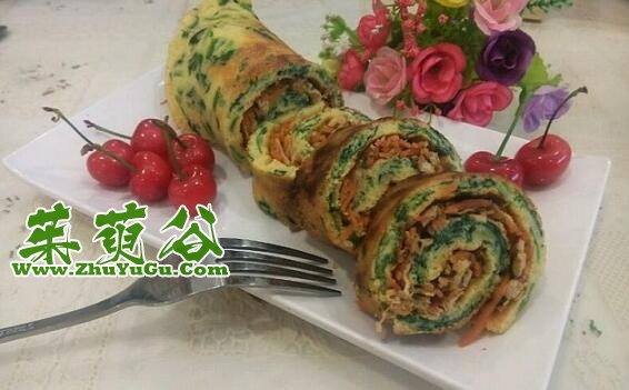 今天教大家一个菠菜鸡丝蛋卷 准备的材料有菠菜和去皮的胡萝卜还有就是鸡胸肉 1:鸡胸肉先放入锅中加入料酒. 2:然后把胡萝卜切成细丝和菠菜[焯水时5-10秒即可]分别放入锅中焯水盛出. [胡萝卜素转化成维生素A后后补肝明目的作用,缓解眼睛的干燥,也有人把它称为是天然的眼药水] [菠...