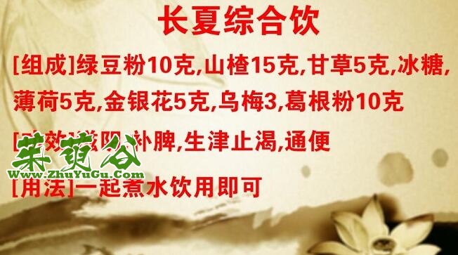 代茶饮 长夏综合饮1zhuyugu 发布于 2016-08-12 10:48:33长夏这个季节很多人,脾虚,排便不畅,食欲不振,口干口渴喝什么都不解渴 推荐一个长夏综合饮。适合绝大部分人群饮用 这是个有健脾、利湿、清热、消食、滋阴功效的小方子。 原料: 绿豆粉10克,山楂15克,甘草5克,冰糖几颗就行, 薄荷5克,金银花5克,乌梅3,葛根粉10克 放在一起煮水...赞 (0)标签:养生堂笔记 / 长夏综合饮